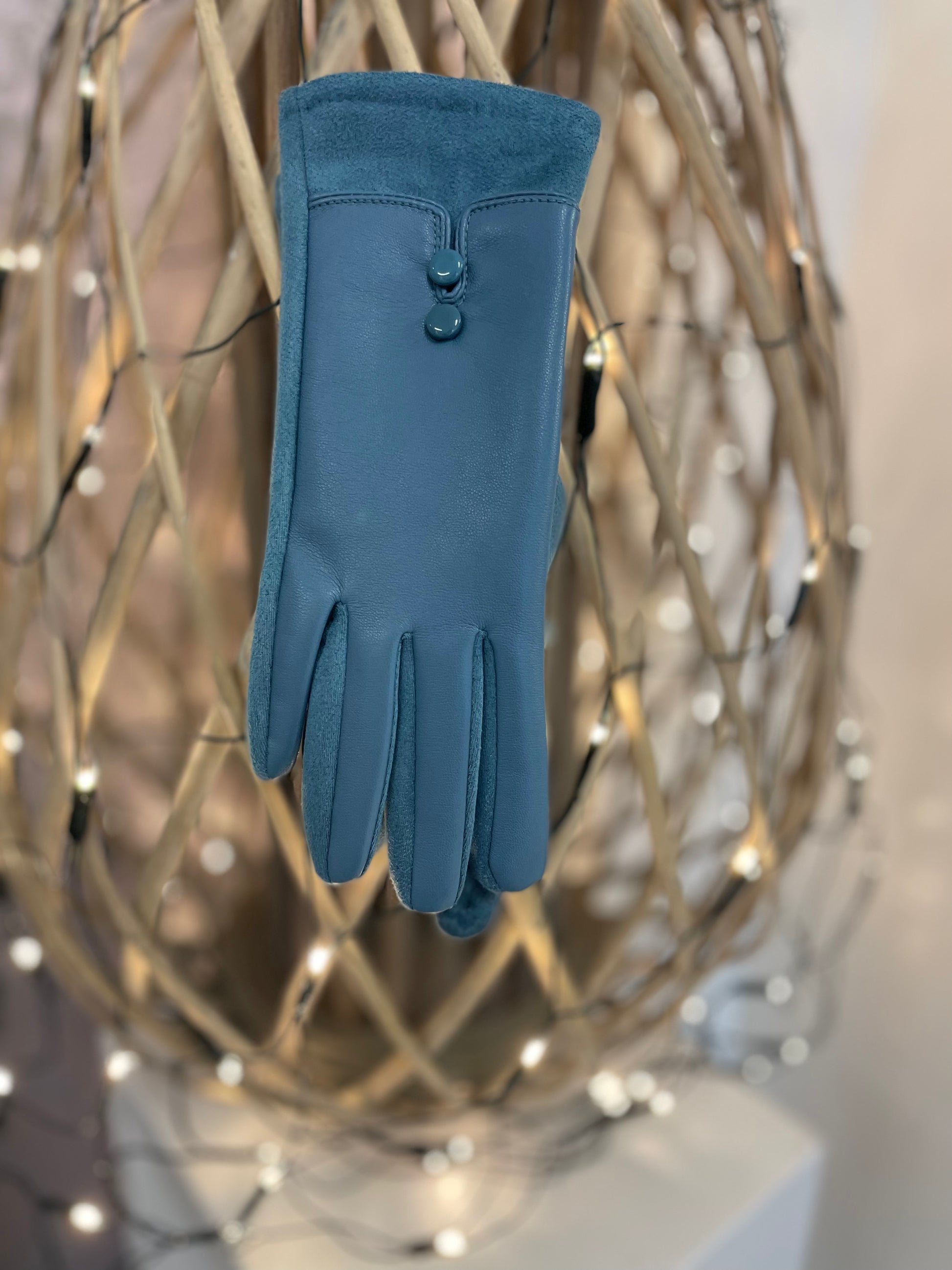 Expertly crafted cornflower blue leather gloves with suede detail and button accents. Made with high-quality materials, these gloves offer a stylish and sophisticated look while providing warmth and protection from the elements. Elevate any outfit with these elegant and functional gloves.