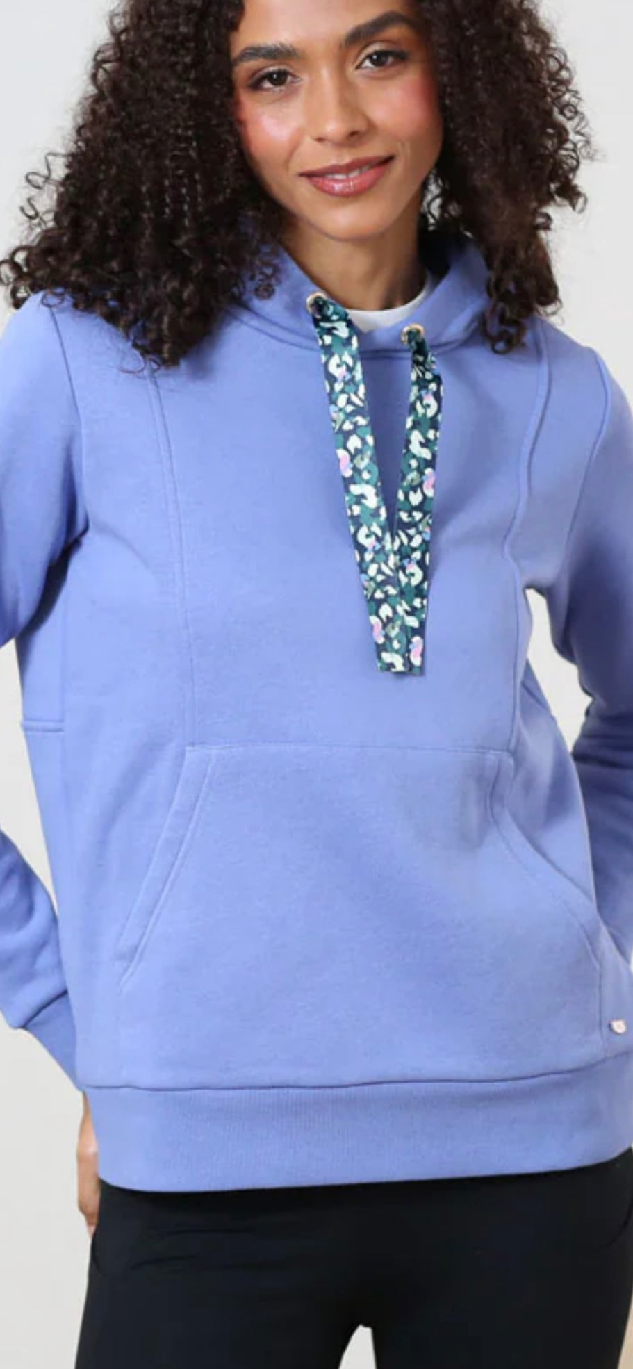 Designed with a relaxed silhouette, hooded neckline and front pouch pocket, the Greta Hoody is finished with patterned drawstring detailing for a modern touch. The soft blue colourway brings a calm, versatile feel that pairs effortlessly with denim, joggers or loungewear.
